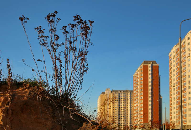 Деревня, хоть и прославилась как место жительства Димы Билана, на вид довольно бедная. Пара сгоревших руин, много некрашеных деревянных домишек, какой-то жуткий заброшенный особняк в три этажа из искусственного камня. Мне приходится ковылять по рытвинам и ухабам, так как вдоль улицы нет асфальтовой тропинки. Кое-где разбросаны бетонные куски свай для запрета парковки, кое-где тропинка появляется, но вскоре обрывается. Машины почему-то не тормозят на пешеходных переходах, у водителей здесь другие законы. Человек в розовой фуфайке жжет мусор, разложив костер прямо на обочине, на фоне розового кирпичного забора и розового дома. При этом по Боровской улице ходят городские автобусы, можно взять и уехать на Юго-Западную или в Саларьево. Около дома №55 стоит третий важный памятник района — обелиск погибшим воинам из деревни Рассказовка в годы Великой Отечественной войны, но открыт он совсем недавно — в 2001 году. Неподалеку экскаватор что-то копает, комья глины валяются везде на проезжей части. Строитель, увидев мое брезгливое лицо, вдруг берет лопату и начинает торопливо сгребать глину в сторонку.