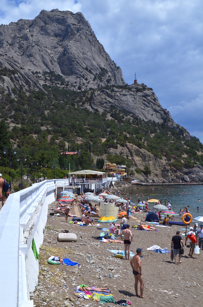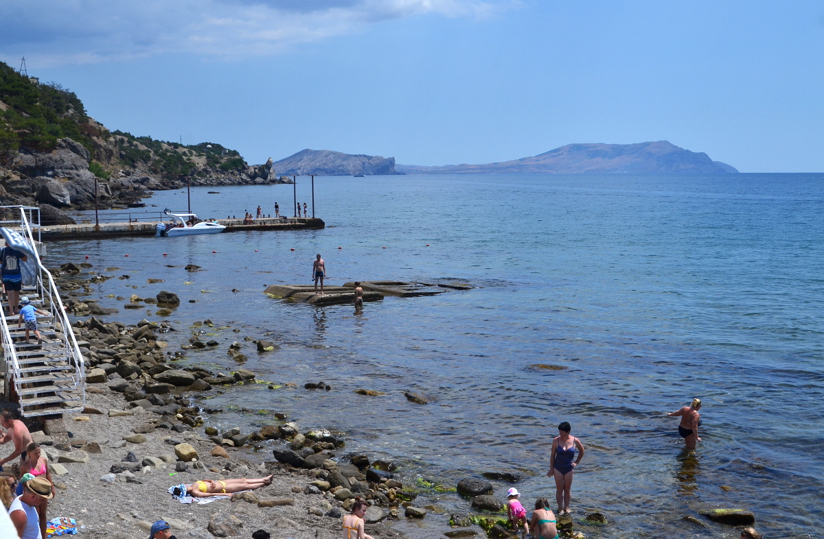 Сам поселок Новый Свет находится на побережье Черного моря близко к Судаку, в котором мы жили. В Новый Свет ездили ежедневно купаться, на самый теплый пляж в Зеленой бухте.