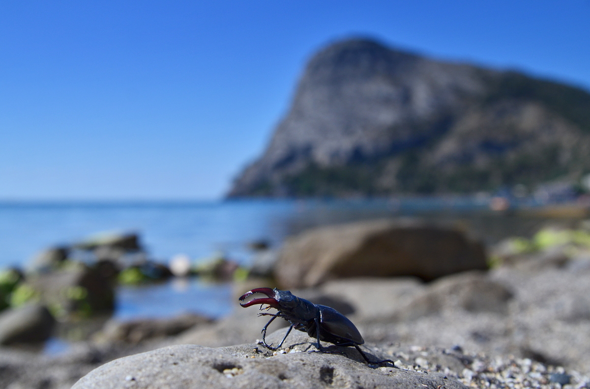 Наши соседи по пляжу сказали, что выловили рогача в море и положили сушится. Подумали, что он уже неживой, и можно забрать его в качестве сувенира. Но, жук вдруг ожил, зашевелил лапками. И был возвращен в более подходящее местообитание – в кусты.