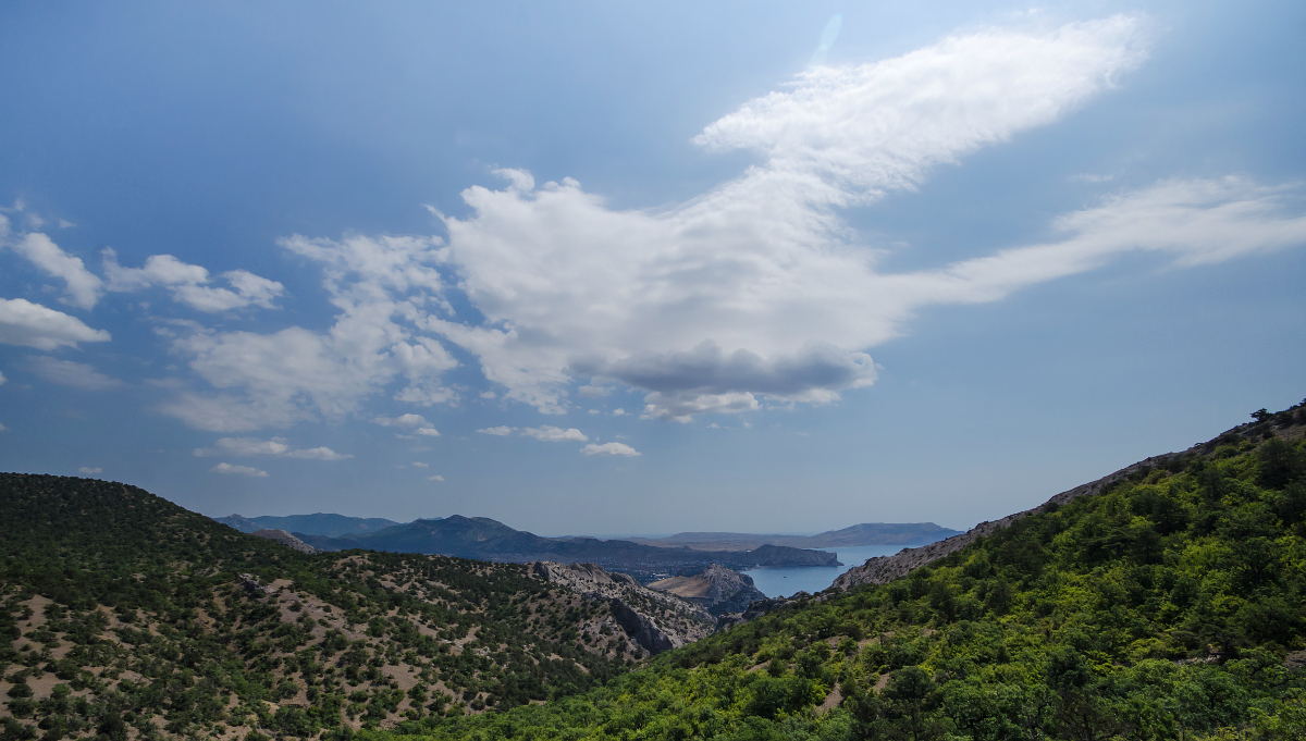 С северной стороны Сокола находится ущелье и несколько пригорков, по которым пролегает небанальный путь в Судак. Правда, тропу вблизи села Уютного совсем размыли дожди и заполонили растения.