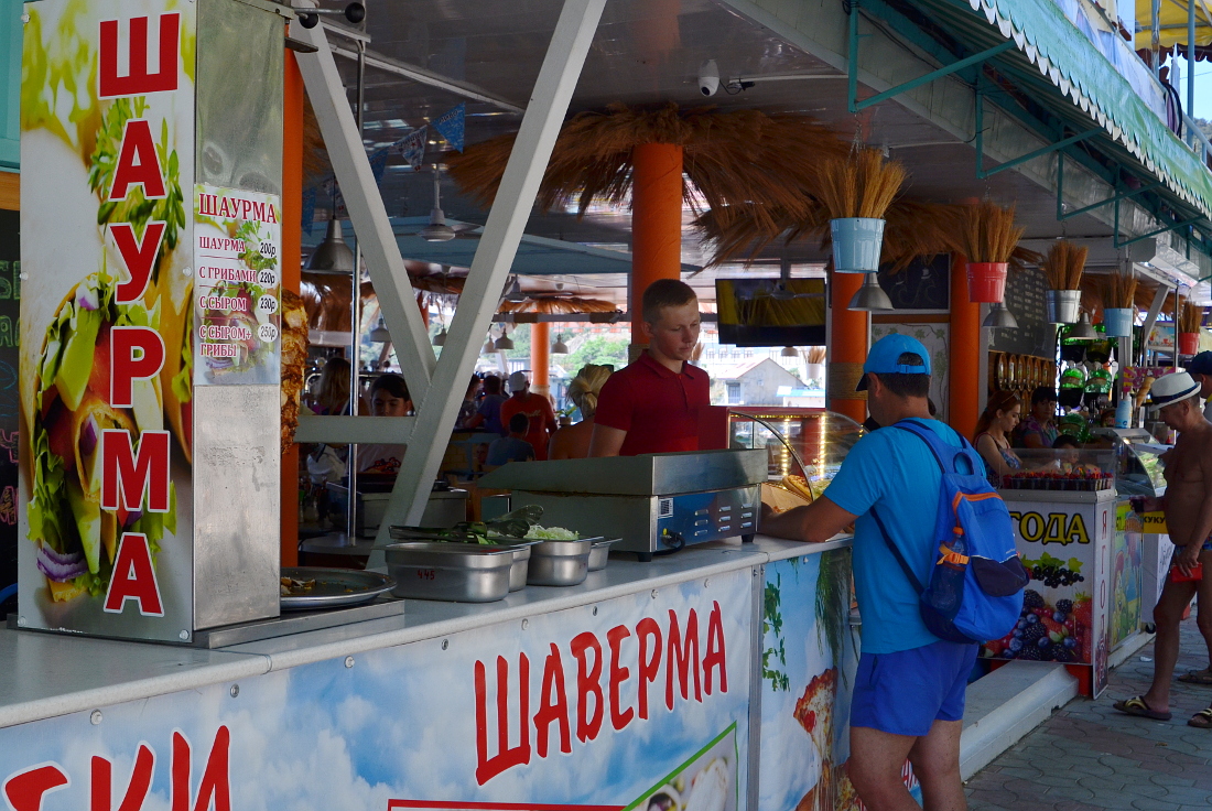 В поселке есть рыночек с неплохими ценами, можно готовить самому. Нам очень нравилось покупать в парке в одном ларьке обалденные чебуреки - с сыром, мясом, просто красота. Ни до, ни после таких вкусных не ела. Какие - то мастера были фантастические.