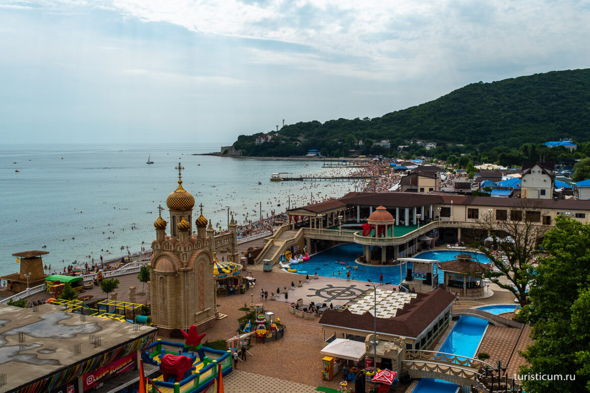 Центральный район. Он тянется вдоль всего Центрального пляжа, с двух сторон ограничен реками Вулан и Тешебс. Здесь отлично развита городская инфраструктура — много парков, аттракционов, кафе, магазинов. Среди туристов с детьми популярны походы в дельфинарий и аквапарк. Плюс ухоженные песчано-галечные пляжи со всеми курортными удобствами — шезлонгами, туалетами, зонтами, камерами хранения. От отелей или гостевых домов до моря рукой подать (100–500 метров). Поэтому проживание тут всегда стоит дорого, даже в низкий сезон трудно найти комнату дешевле 2000 ₽, а летом средняя стоимость номера в сутки начинается с 3500 ₽. Минусы района — в туристический сезон местные пляжи переполнены, море мутное, на улицах полно народу, шум стоит с утра до вечера.
