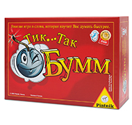 Тик Так Бумм – назвать слово, которое содержит в себе определённый слог. Просто? Конечно, просто. Только сделать это с тикающей бомбой в руках становится уже сложнее. Крепкие нервы и блестящая эрудиция – ключ к победе в этой игре. Игра прекрасна тем, что при любом количестве участников будет одинаково динамичной и напряжённой.