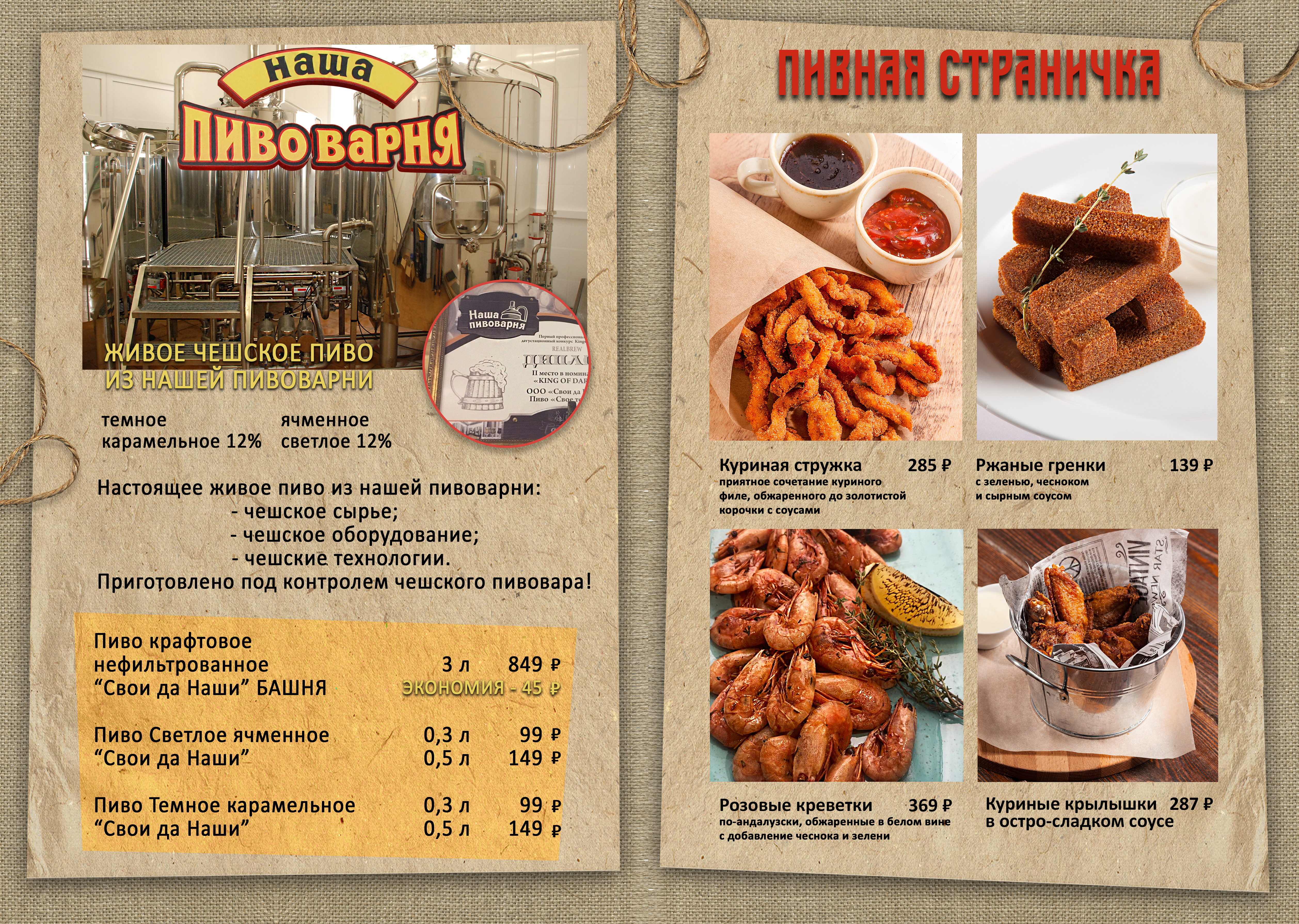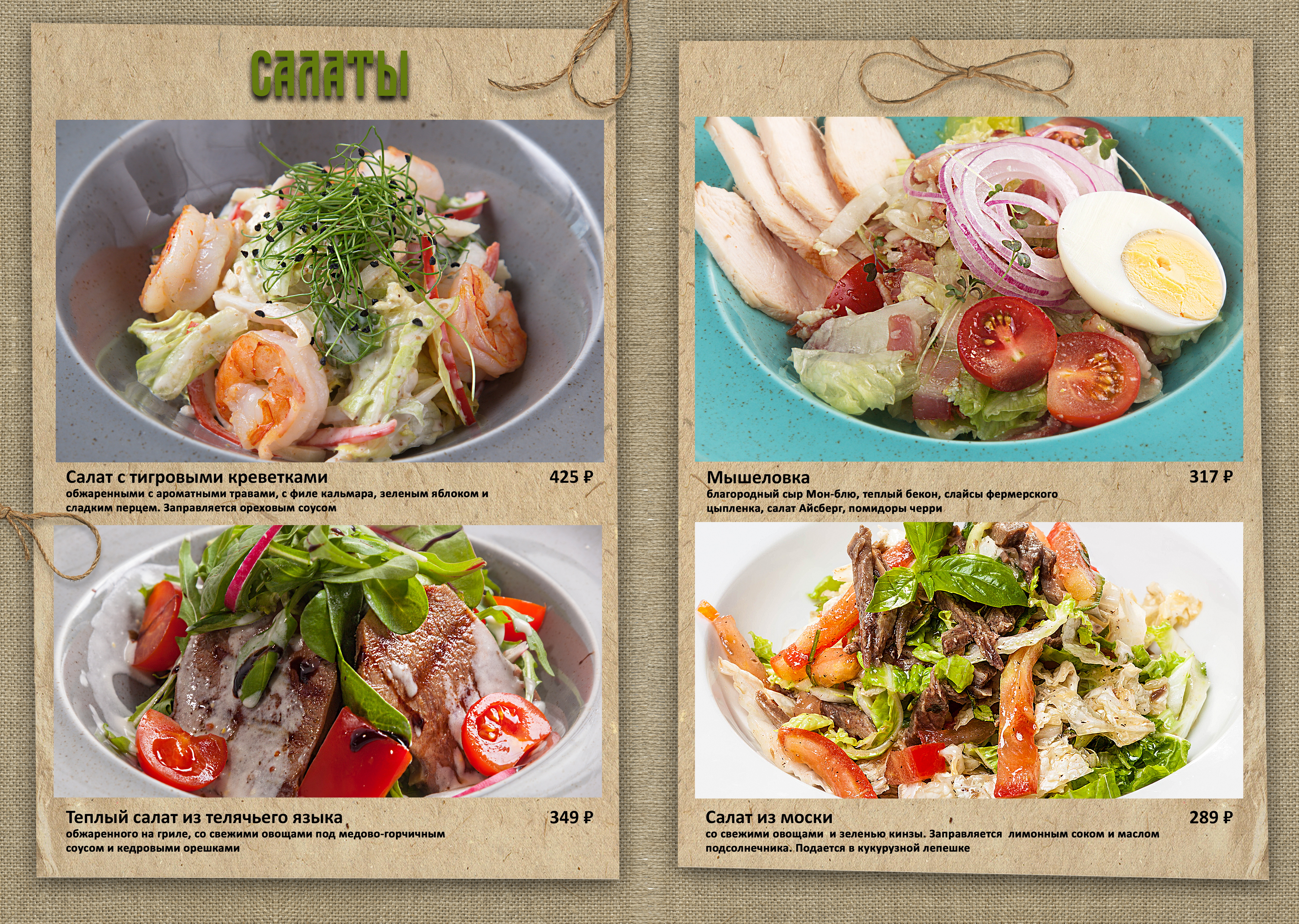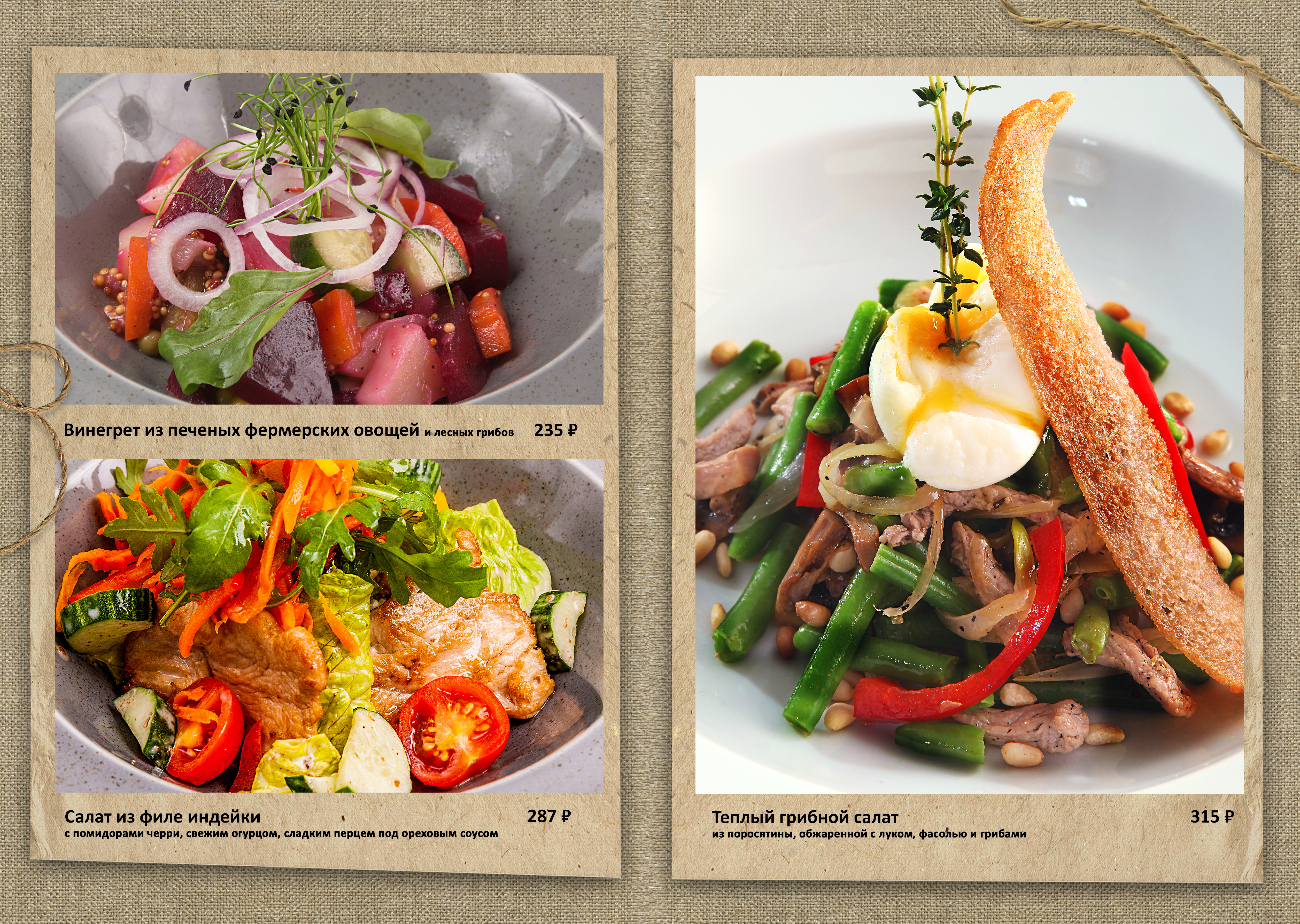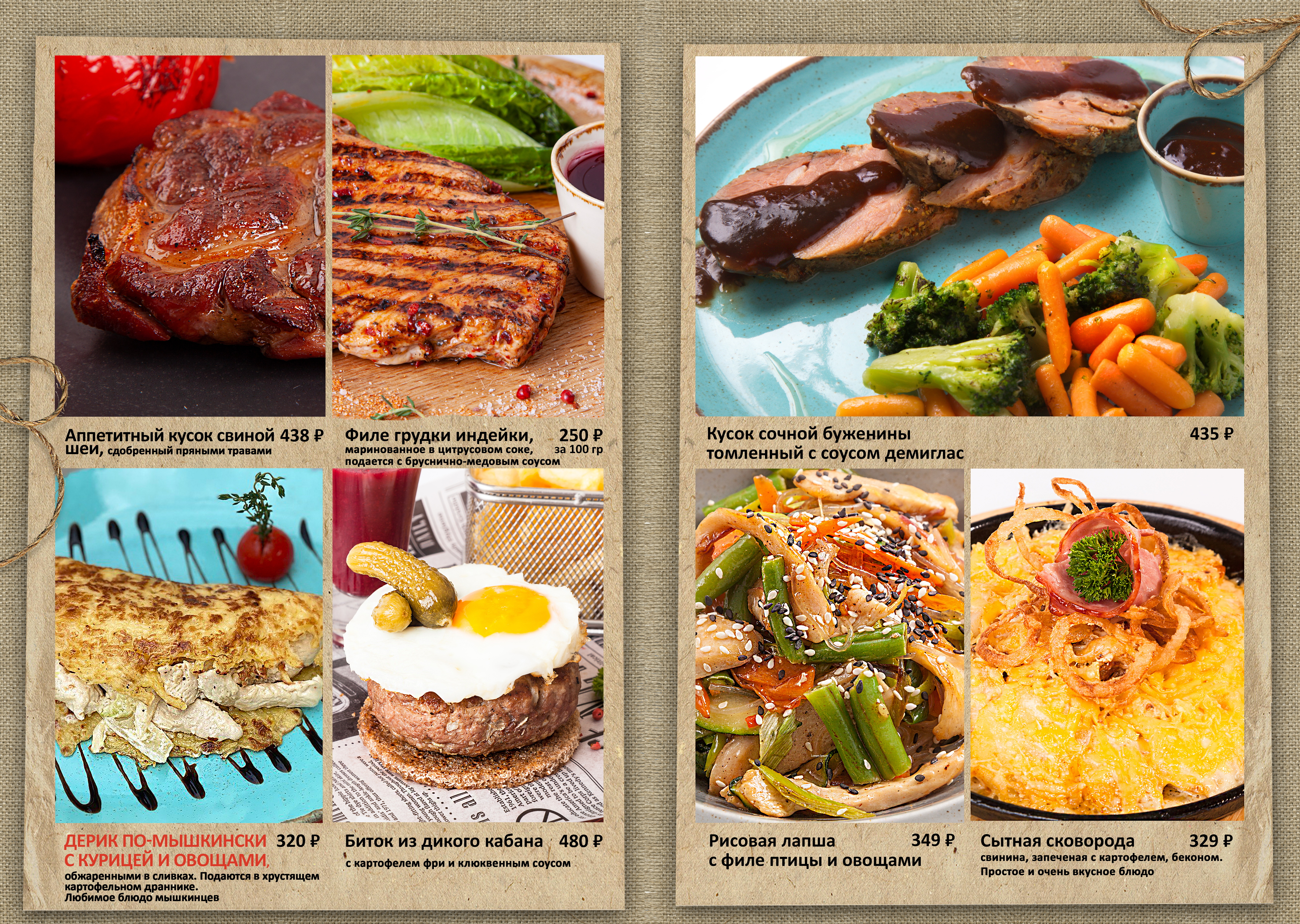 Далее – подлинное великолепие: деревянная мебель, официанты в народных костюмах, кухонная утварь и витражи на окнах, подлинный самогонный аппарат в одноименном зале – “Самогонный”. В меню блюда традиционной русской кухни, деревенская еда.
