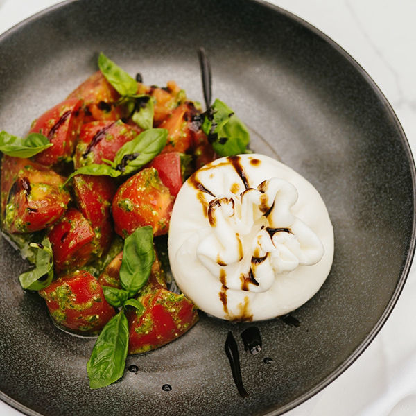 - Салат с хурмой, пармским окороком и бурратой — 590 руб.