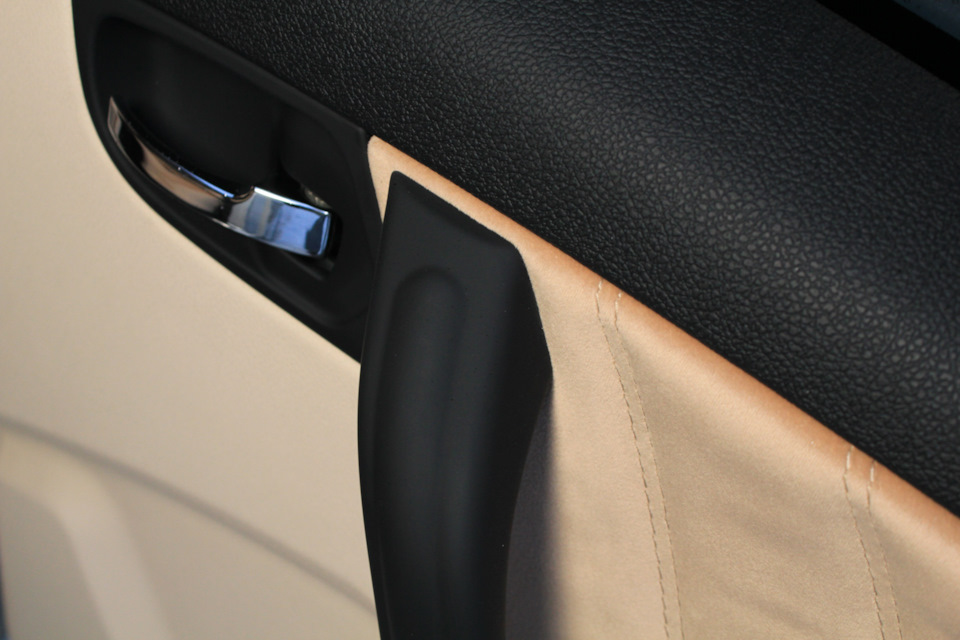 Среднюю стойку не перетягивали, так как по логике нужно ещё и весь отходящий пластик с низу перетягивать… а это в свою очередь подразумевало бы, что и ковролин нужно делать бежевым. Такое глобальное осветление салона не входило в мои планы, так как в ногах должен быть чёрный цвет (на мой взгляд).