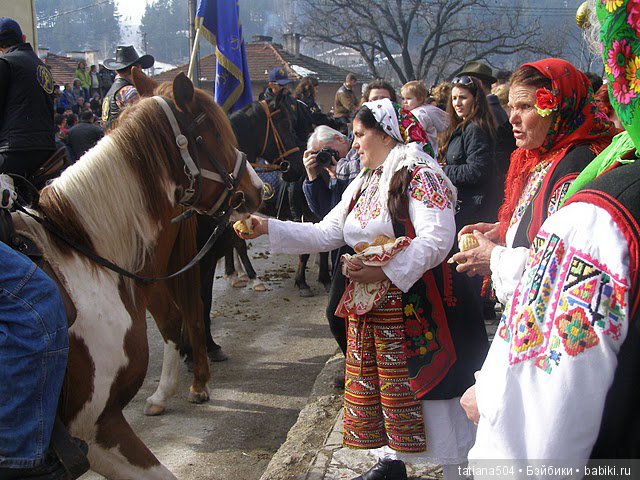 А молодые девушки сопровождали эту подготовку лошадей к празднику песнями. После этого начинались конные ритуалы, в которых владельцы коней демонстрировали свои умения разводить лихих жеребцов, умение ездить верхом и выносливость. В этих ритуалах принимали участие молодые парни, в некоторых районах Болгарии — только женатые, в других – только холостяки. Они выводили лошадей на ровную поляну, определяли награду и начинали состязание. Это было доказательством, что парни готовы вступить в брак. Параллельно с этой мужской обрядовой линией, существовала и женская. Девушки верили, что если в этот день вымыть волосы, то они будут расти здоровыми, густыми и блестящими, как лошадиные гривы и хвосты. Кроме того рано утром женщины пекли специальные обрядовые хлебы за здоровье лошадей, часто делая их в форме коня или подковы, затем освящали в церкви и раздавали всадникам и их коням, родным и соседям. В былые времена, совершая этот ритуал, женщины подпрыгивали, брыкались и ржали – это было магическим ритуалом за здоровье и плодовитость коней. Люди также верили, что обряд принесет потомство и самим молодым невестам.