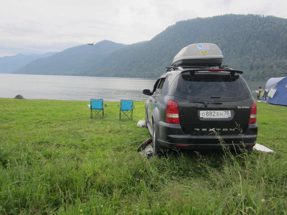 В Артыбаш мы прибыли к вечеру, но еще засветло и встали на стоянку в очень живописном месте (вертолетная площадка)… с прекрасным видом на озеро.