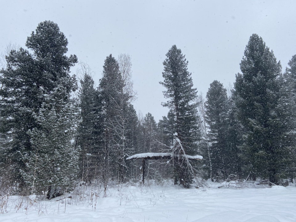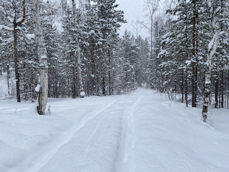 Ветер стих, но снег продолжал идти, и встретила нас сказка зимнего леса. Надо сказать, солнце в Сибири такое, что даже сквозь тучи и хмарь его видно.