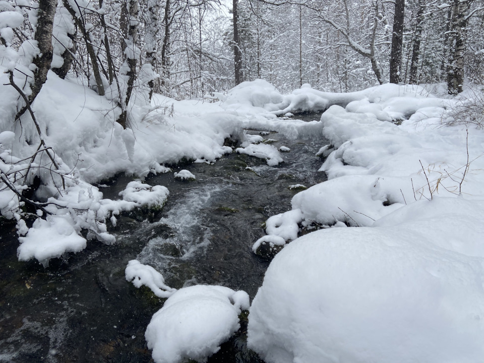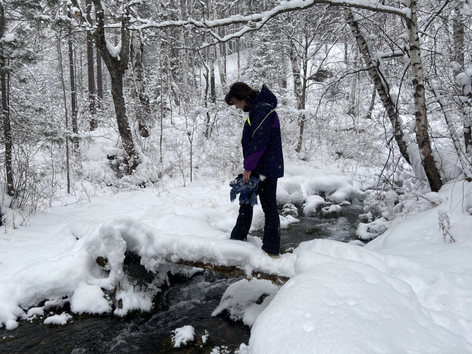 Мостки через ручьи — особое развлечение. Скользкие, в шапке снега… Поскользнёшься — ноги точно промочишь. А до дома неблизко.