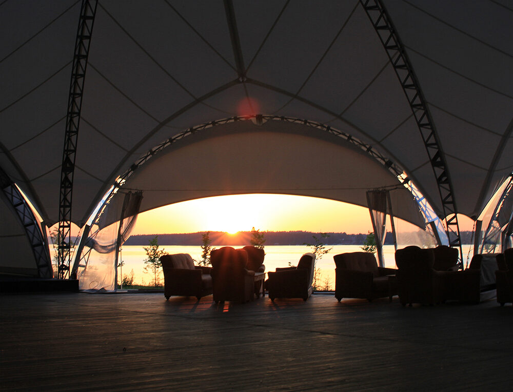 На территории нашей базы отдыха расположился большой арочный шатёр, который вы сможете арендовать под любые мероприятия