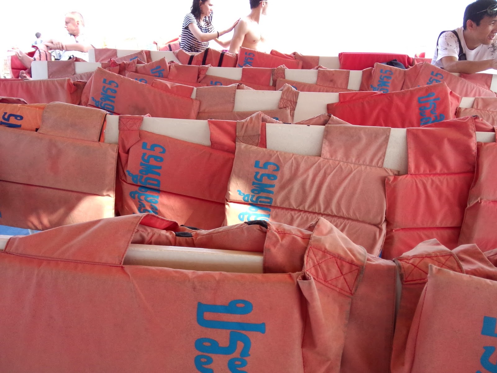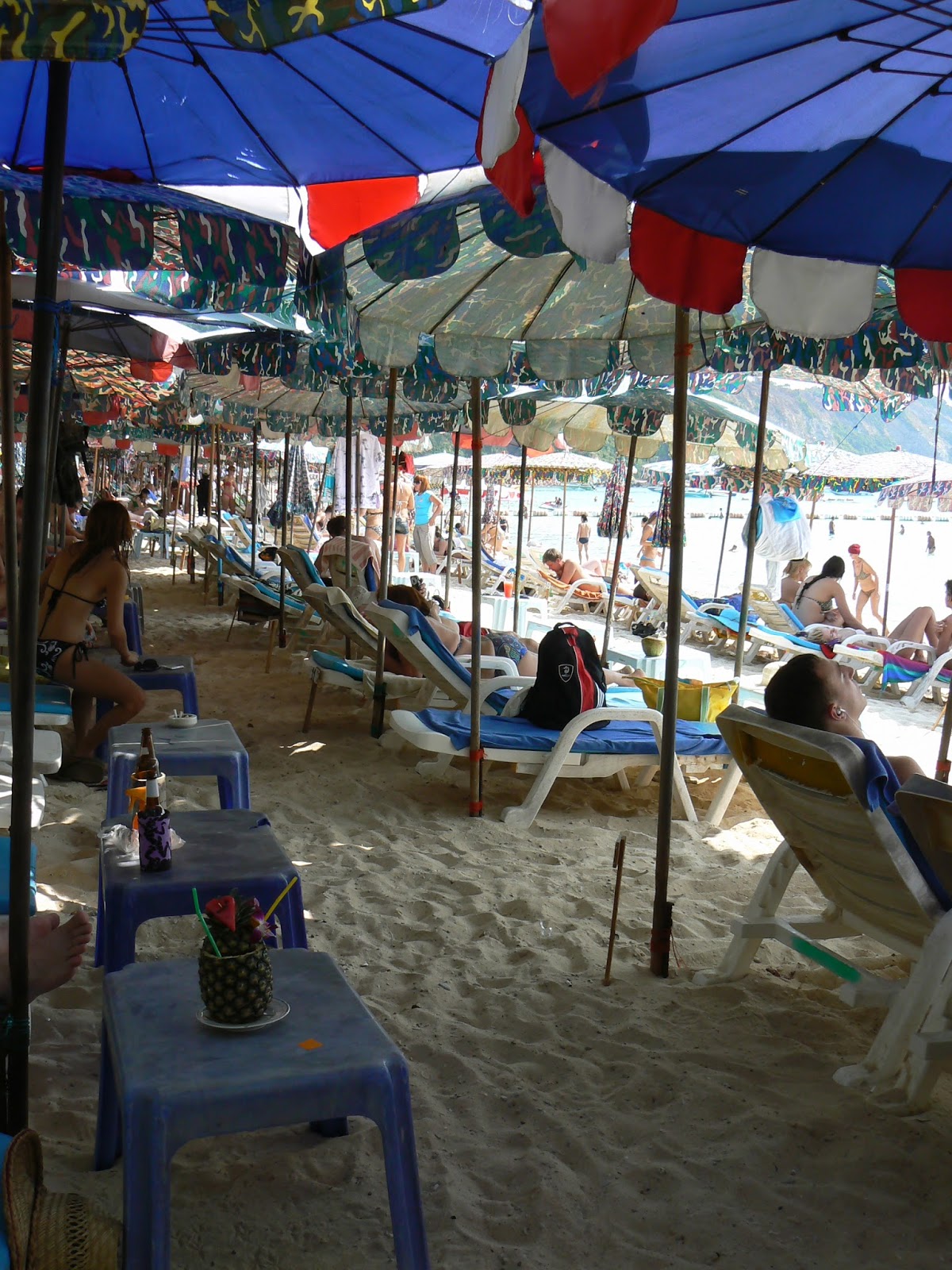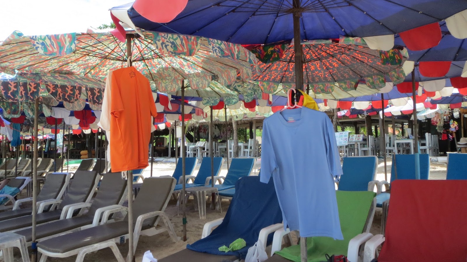 Стоимость лежаков на пляже Самае, где мы останавливаемся, разная: сейчас высокий сезон: в первом ряду лежак стоит 100 бат, во втором и третьем - 50 бат. С нас за лежак денег не берут (мы постоянные клиенты), но мы и не борзеем, в первый ряд не лезем, пусть хозяева зарабатывают деньги. Лежаков в первом ряду всего штук 15-20 на этом кусочке пляжа. Они все заполняются.