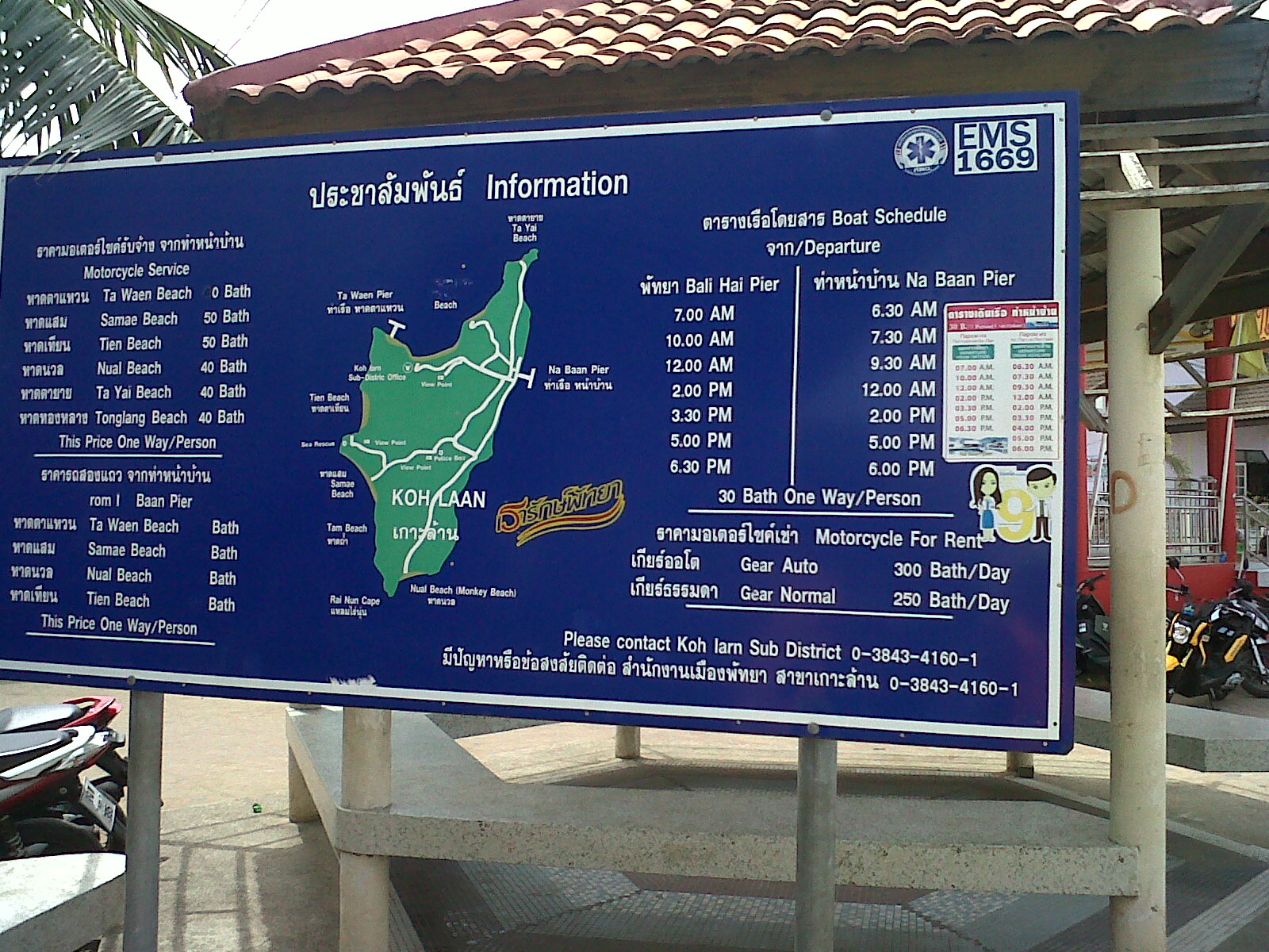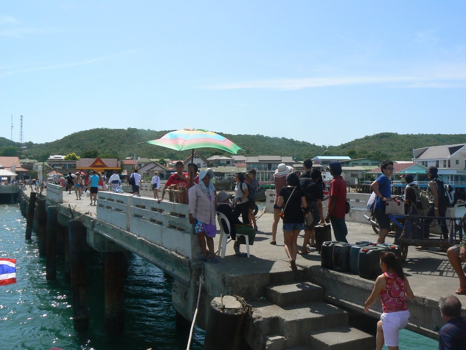 На острове два пирса- старый Na Ban (там есть магазин "7-11" и там же местная деревня, храмы, школа. ) и новый, на пляже Tawaen. Туда привозят туристов. Из Паттайи паромы отходят с одного причала, но в разное время.