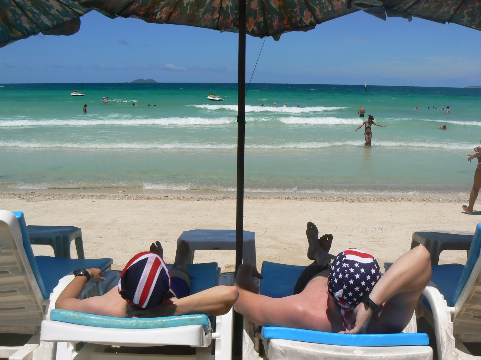 Цены на лежаки на каждом кусочке могут быть разные. Сейчас не сезон- пляжи пустуют, лежаки раздают по 20 бат на день (2013-2014 год).