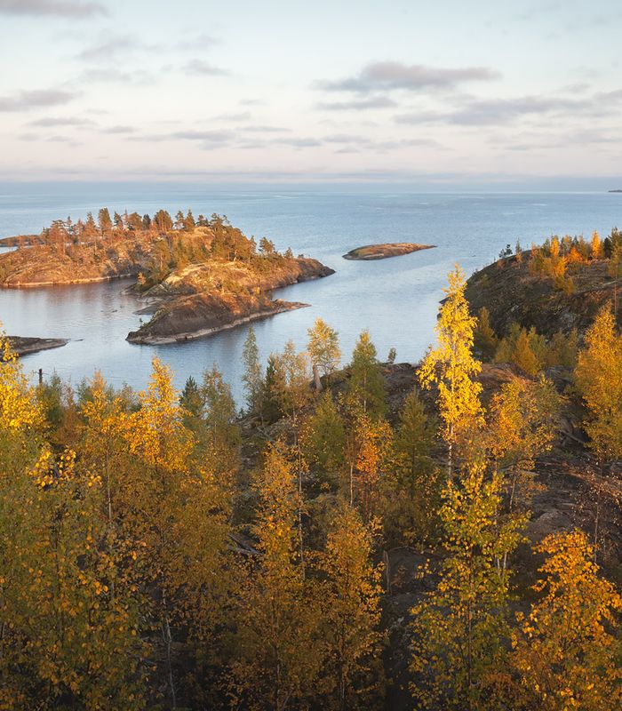 В конце сентября  в Карелии наступает самая яркая пора - золотая осень! Деревья облачаются в красно-желтые наряды, разукрашивая тёплыми красками суровые пейзажи северной Ладоги. Это, безусловно, самое красивое время для путешествий по шхерам!