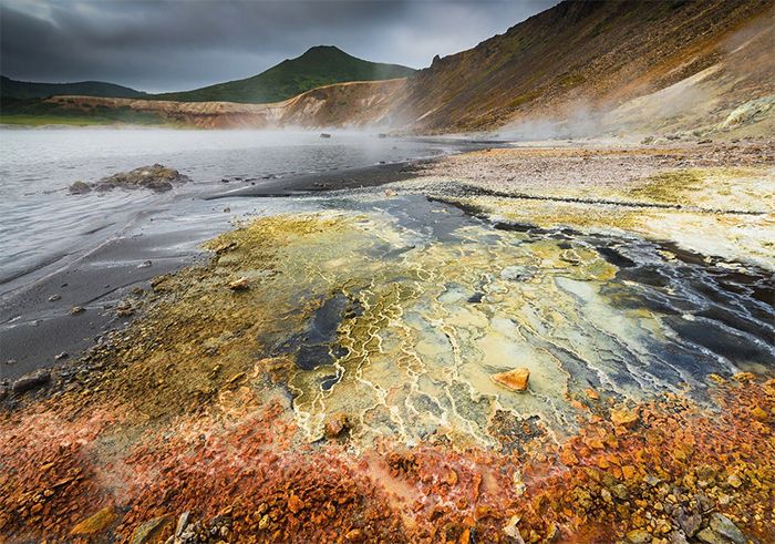 Фумаролы — это трещины, из которых выхлопами выходят вулканические газы. Сера, которая есть в составе газов, кристаллизуется и образует на поверхности желтые кружевные узоры. Необыкновенное и эффектное зрелище, от которого сложно оторваться.