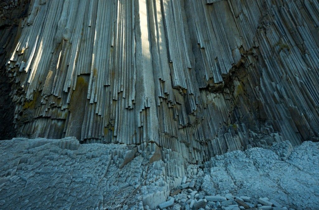 "Мыс Столбчатый" - одно из самых удивительных и уникальных мест на земле. Жители Кунашира говорят: "Кто не видел мыса Столбчатый, тот не видел Кунашира". Название мыса говорит о том, что он состоит из столбиков, стоящих вплотную друг к дружке и образующих вертикальные стены. Самое удивительное, что эти столбы образовались в результате извержения вулкана из застывшей базальтовой лавы.