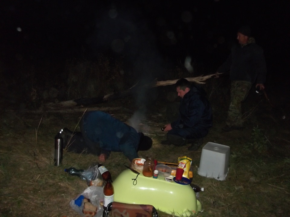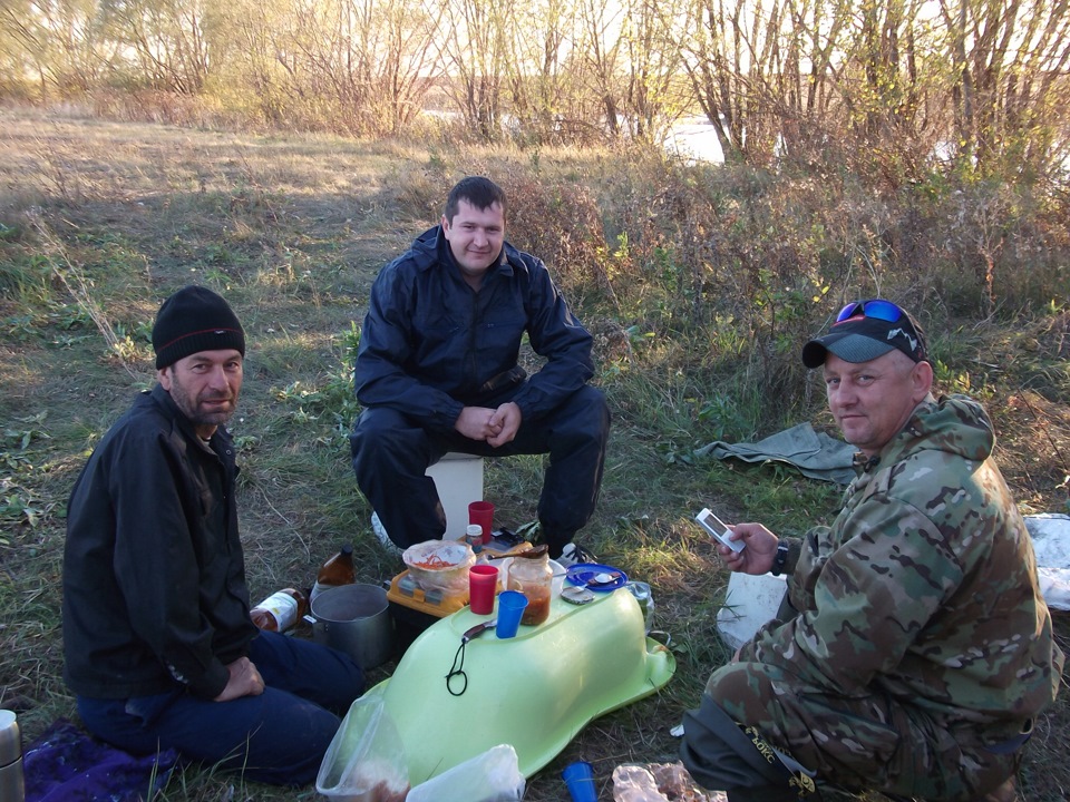 Выкладываю немного запоздалый отчет. Ездили на этой неделе с четверга на пятницу с ночевкой, на пруд "Зеленый" в соседней Воронежской области, компанией в количестве 4-х человек на двух машинах. Взяли спиннинги, так как в пруду довольно много судака, окуня и щуки, ну и фидеры в надежде половить плотву и густеру. Но если честно ехали больше не за рыбой, а побух…, простите — культурно отдохнуть. На месте были около 15.00 Погодка выдалась днем отличная, для посиделок и травли рыбацких баек в самый раз, а вот с рыбалкой, сразу поняли что не особо перспективно будет. Пруд на 100% оправдывает свое название, вода в нем была как буд-то разведена с зеленкой. Самое главное водорослей и какой-либо растительности вообще нет, уровень воды сильно опустился, весь камыш был на берегу и что так цветет не понятно. Как вообще в ней видит рыба, остается загадкой. С вечера покидали немного спиннинг, но особых успехов не достигли, после чего развели костер и приступили как положено к активному потреблению горючей жидкости от пива, до свойского самогона (хорош оказался зараза). Вечер пролетел незаметно и часов в 12 ночи легли спать. Ночка в отличии от дня выдалась прохладной, с утра обе лодки покрылись инеем.
