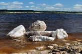 Может быть, и не очень похожи, но шикарный пестрый ковер из диких трав и полевых цветов, обрамляющих берег, в сочетании с дивным ароматом привольного разнотравья, настраивают мысли на мажорный лад – валуны и плиты кажутся истинно мраморными.