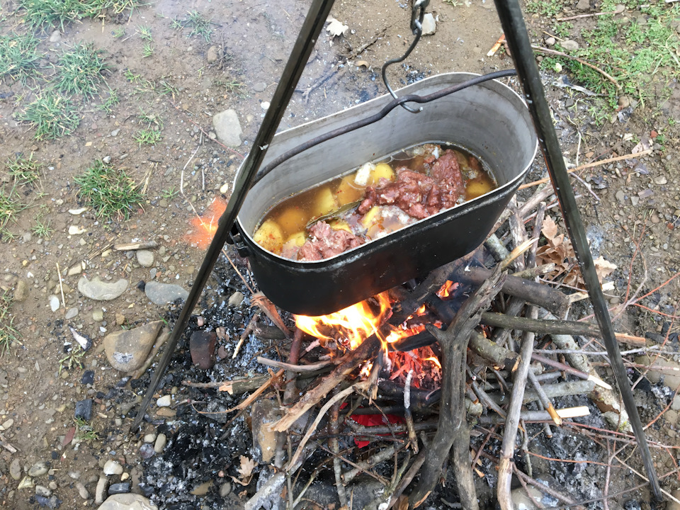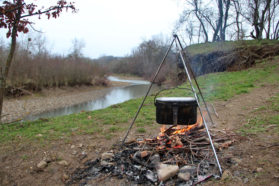 Машину припарковал с соблюдением требований о водоохранной зоне, а костерок развели прямо на берегу над речкой.