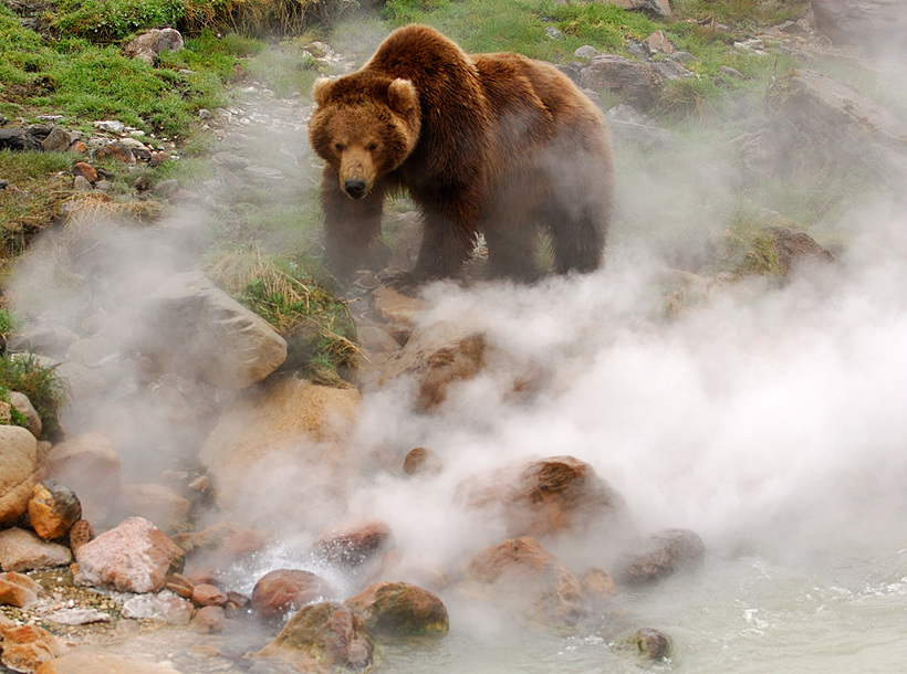 Осенью погода на Камчатке в основном дождливая и серая. Хочется залезть в теплый источник и просидеть там до вечера. К сожалению, вода в горячих источниках Камчатки содержит такое большое количество химических элементов, что полезно оставаться в источнике не более 20 минут.
