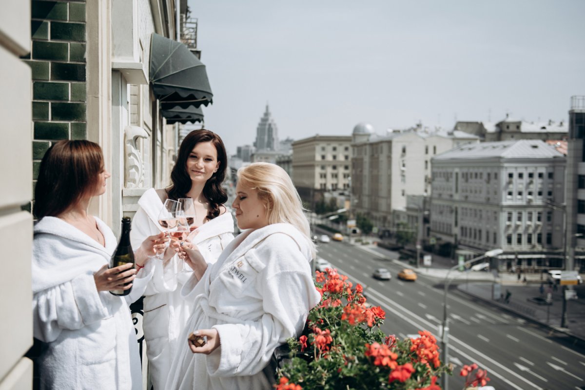 Отель The St. Regis Moscow Nikolskaya отвечает всем требованиям сервиса на международном уровне, находится в центре города, с крыши открываются виды на Кремль и Лубянскую площадь, но особенной его изюминкой является романтический итальянский дворик — идеальное место для камерной церемонии. Мы разместили молодоженов в разных номерах, которые были расположены напротив друг друга. Роскошный королевский интерьер, безупречный сервис, вкуснейший завтрак — все это располагало к идеальной подготовке к свадьбе. Кроме того, в номерах было панорамное остекление, которое открывало вид на итальянский дворик, где предстояло торжество. Когда невеста была готова, к ней в номер зашел отец и вывел ее на церемонию из номера, можно сказать, прямо из-под кисточки стилиста. Поэтому наша невеста не беспокоилась о том, что у нее растреплется прическа или потечет макияж. Все ее мысли — о возлюбленном, о происходящем моменте, который сохранится в ее памяти на всю жизнь. Молодожены вышли из номеров навстречу друг другу. Это было красиво, трогательно, достойно, по-королевски. Конечно, церемония прошла идеально. Но это уже другая история.