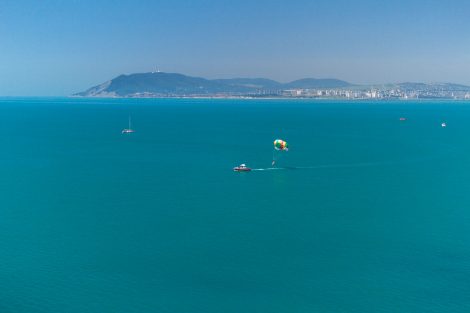 Потом шли на пляж. В основном на центральных пляжах средняя галька или даже встречались крупные валуны, не очень приятно. Загорать мест было достаточно, так как заехали чуть раньше сезона. На пляже все относительно цивилизованно и чисто. Народ приличный. Позднее, левее по набережной, обнаружили песчаный пляж, вот там раздолье для детей и приятный песок под ногами. А обстановка на пляже, как в экзотических местах, немного топорно, но все-таки красиво.