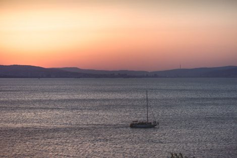 А вечерний пляж тоже имеет свою прелесть, тут можно наблюдать шикарные закаты и золотое море.