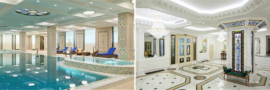 Дом с историческими квартирами и видами на акваторию Невы, расположенный на набережной Кутузова, оснащен не только автомобильными лифтами, но и тренажерным залом, 15-метровым бассейном, зоной SPA, гидромассажной ванной, сауной, хамамом и массажным кабинетом, занимающими этаж площадью 500 кв.м. Изюминка проекта – окна бассейна выходят в Итальянский дворик, что создает иллюзию открытого пространства.