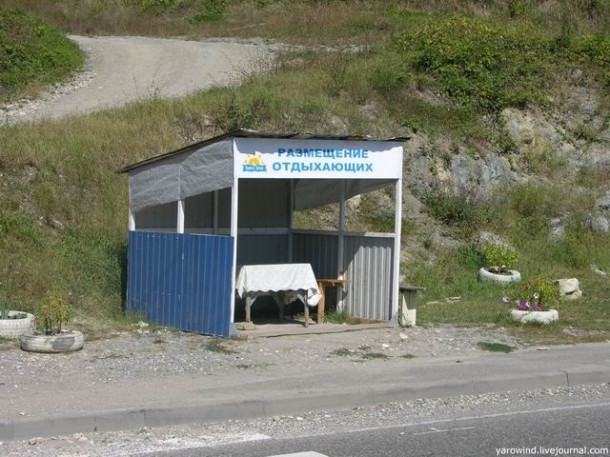 На дороге вдоль моря везде стоят будочки,со сторожащими там туристов местными жителями. Конкуренция очень большая. В середине сентября часть будок уже пустовали – приближался несезон