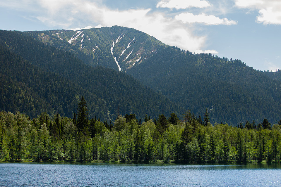Третье озеро. Находится по тропе за часовней, через небольшой перевал. Вид на Шапку Мономаха.Туда ходят экскурсии, но нам было лениво, мы были без подобающей одежды, да и самый пик сезона клещей. Это озеро нам назвали как Мертвое, а в интернете на некоторых ресурсах его называют Сказкой.