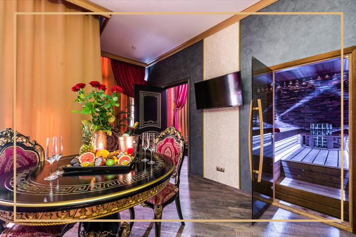 Пары могут провести романтический вечер и уютных комнатах отдыха с роскошной обстановкой. Так же мы предлагаем проведение в нашем комплексе "мальчишников", "девичников", Дней рождений , корпоративов и других мероприятий