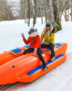 Впасть в детство и от души насладиться всеми возможными зимними развлечениями от ватрушек до снеговых бананов.