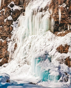 Нам посчастливилось прогуляться до водопадов в двадцатиградусный мороз по туристической тропе вдоль реки Белой. Все внутри трепетало от снежной сказки, которая нас окружала. Пришлось преодолеть крутые подъемы и спуски, карабкаться вверх, цепляясь за призрачную опору, оказаться на краю пропасти, чуть не повернуть назад, но не сдаться. А наградой стали застывшие ледяные водопады, внутри которых словно артерия билась хрустальная вода.![]()