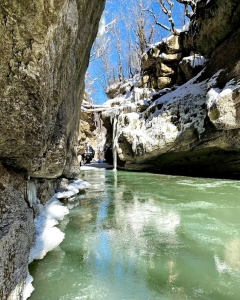 Отдых в Адыгее зимой воистину замечателен и чарующ, ведь каньон реки Белой в это время выглядит по-особенному. Ущелье наполнено карстовыми пещерами, а лучи зимнего солнца редко заглядывают в особо укромные уголки. Таким образом, сугробы снега иногда залеживаются здесь до весны.