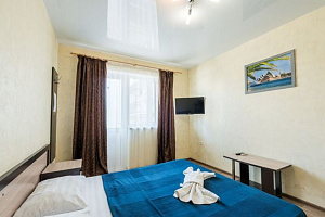 При бронировании номера вносится предоплата в размере 10% от стоимости проживания.К вашим услугам современные, комфортные номера, рассчитанные на двух-, трех-, и четырехместное размещение, а также просторные апартаменты с кухней, рассчитанные на размещение 6 человек. Каждый номер оборудован всем необходимым: удобная мебель, сплит-система, ЖК-телевизор, холодильник, качественное постельное белье, комплект полотенец на каждого гостя, санузел.