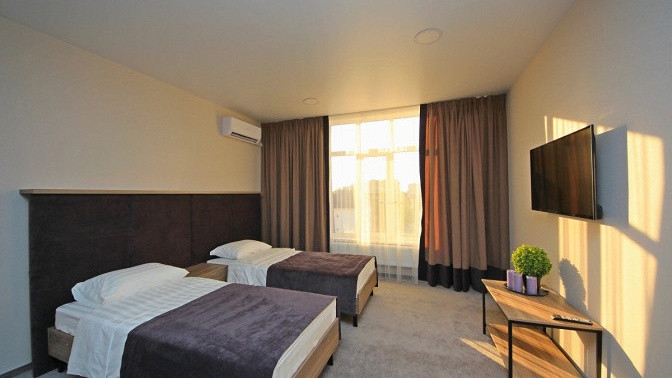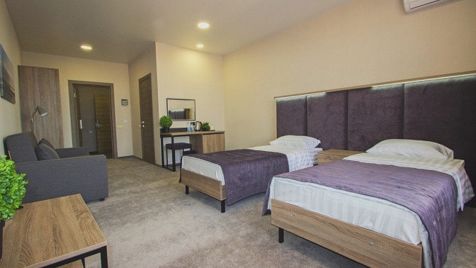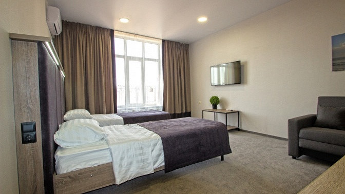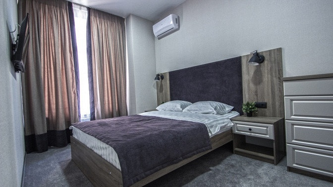 Для проживания гостей приготовлены светлые номера с современным оформлением категории люкс и делюкс. В комнатах установлена мебель для сна и отдыха, хранения личных вещей и одежды, а также необходимая техника (кондиционер, телевизор, электрический чайник). В ванной комнате есть душевая, фен, банные и туалетные принадлежности. Регулярно производится смена постельного белья и полотенец.