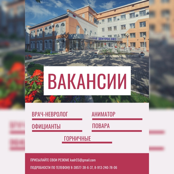 САНАТОРИЙ ЦЕНТРОСОЮЗА РФ В Г. БЕЛОКУРИХА ПРИГЛАШАЕТ НА РАБОТУ: