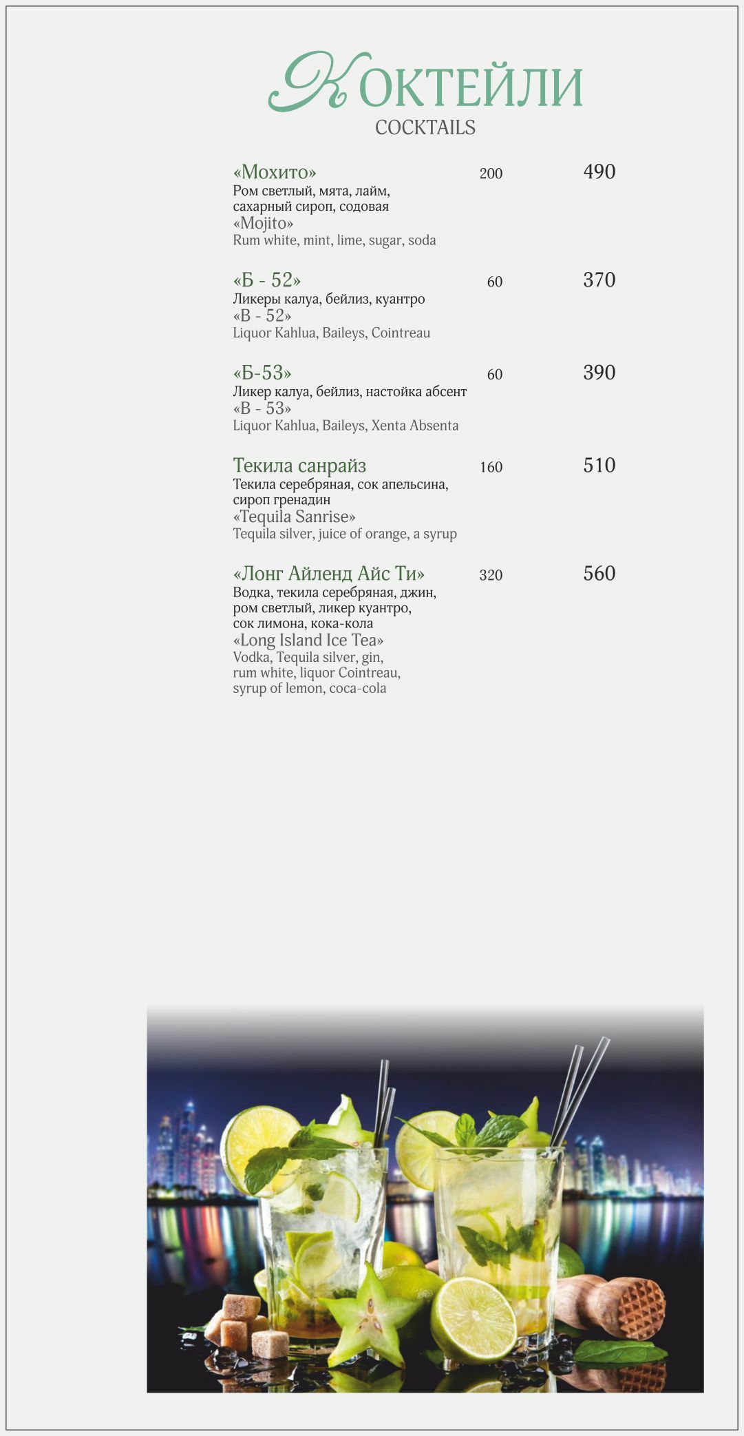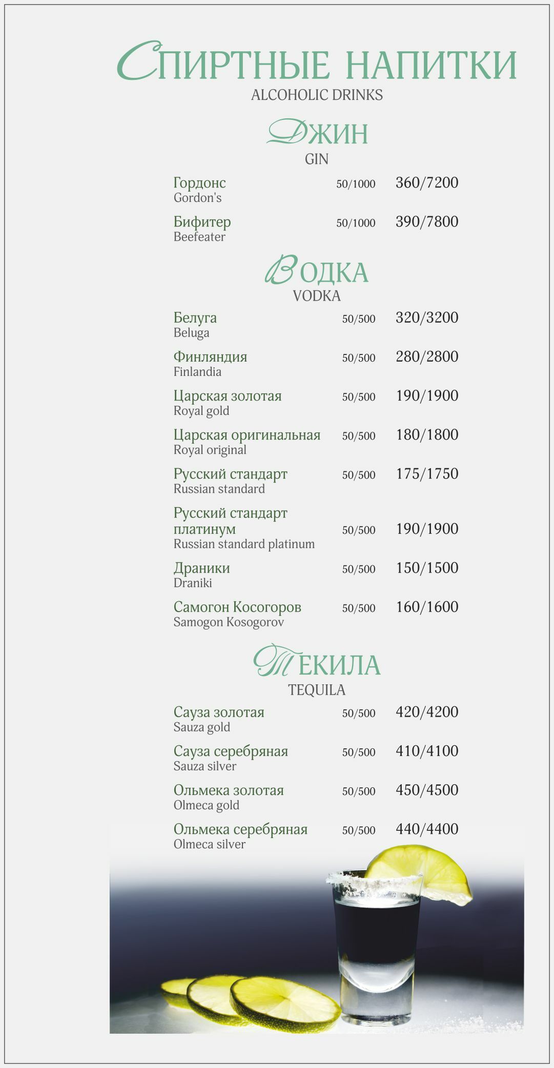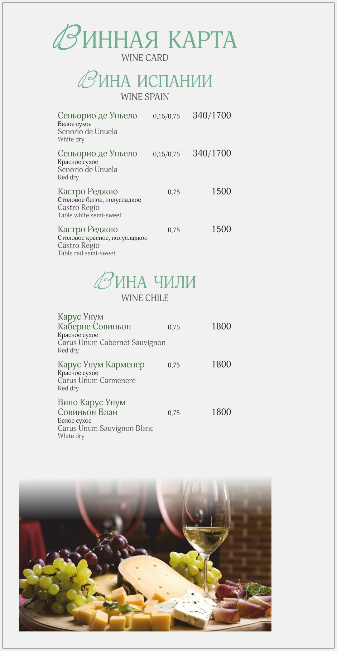 В основе нашего меню – хиты европейской кухни: салат с лососем, закуски из морепродуктов, язык на гриле, тирамису и многое другое. У нас вы попробуете самую ароматную, горячую пасту и пиццу. Винная карта представлена лучшими винами Франции, Испании и Италии.
