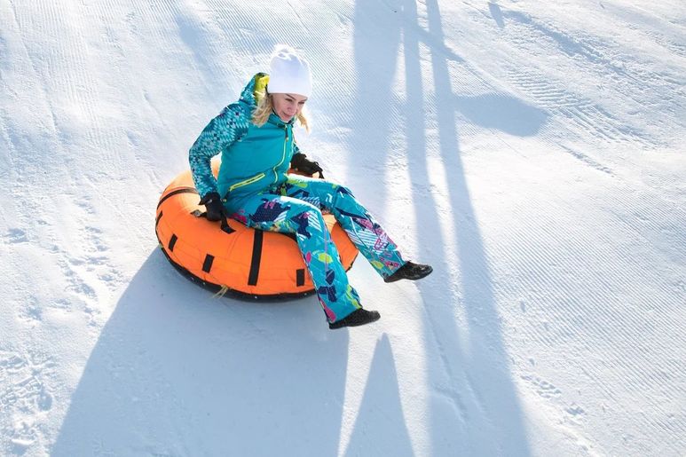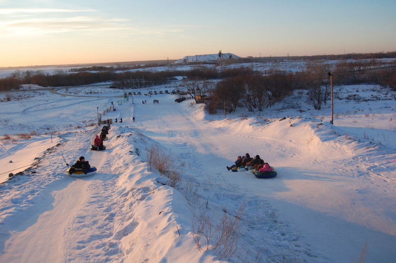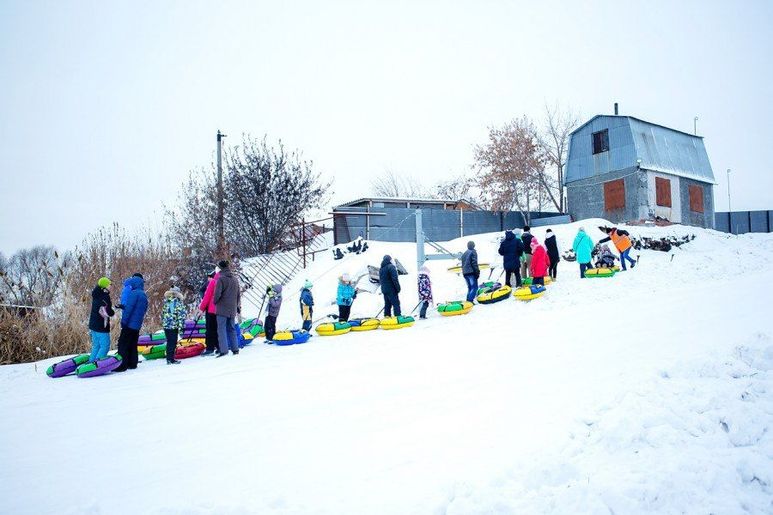 Новенькое местечко с горкой, автоматическим подъемником, гриль-домиками и снегоходным прокатом. Со своими ватрушками нельзя, кататься только на местных. Длина спуска — 250 метров, с ветерком!