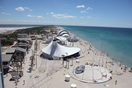 Посёлок предлагает современное жильё и много развлечений. Расстояние до Евпатории – 28 км. Береговой покров – нежный золотистый песок.
