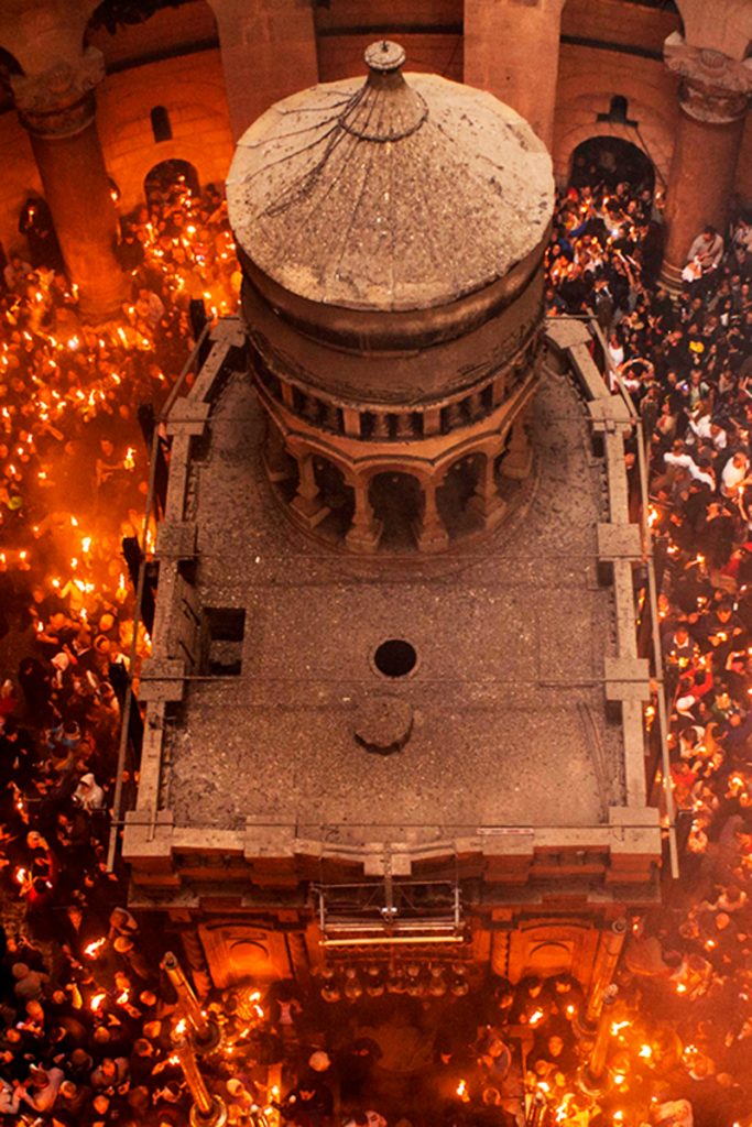 Ее своды украшают гербы все государств, внесших свой лепту в возрождение этого уникального исторического места. Перед алтарем, где молился Христос, вы можете увидеть терновый венок, выкованный из металла и вделанный в пол.
