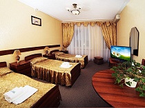 - 3-местный стандартный номер. Площадь 24 м². В номере: 3 односпальные кровати, санузел (душевая кабина), ТВ, холодильник, кондиционер, электрический чайник, фен.
