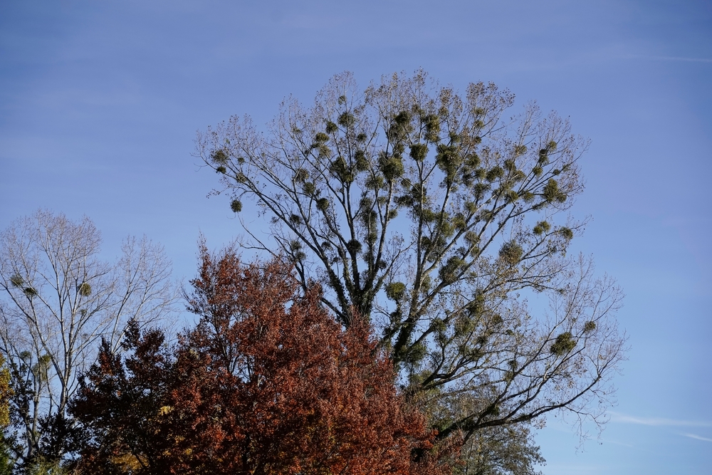 Первое, что бросилось мне в глаза по прилете в Калининград, — обилие омелы. Это вечнозеленое растение-паразит селится на деревьях и выглядит как шар. Омелу традиционно используют для рождественских украшений. Считается, что поцелуй под ее ветками приносит вечную любовь.