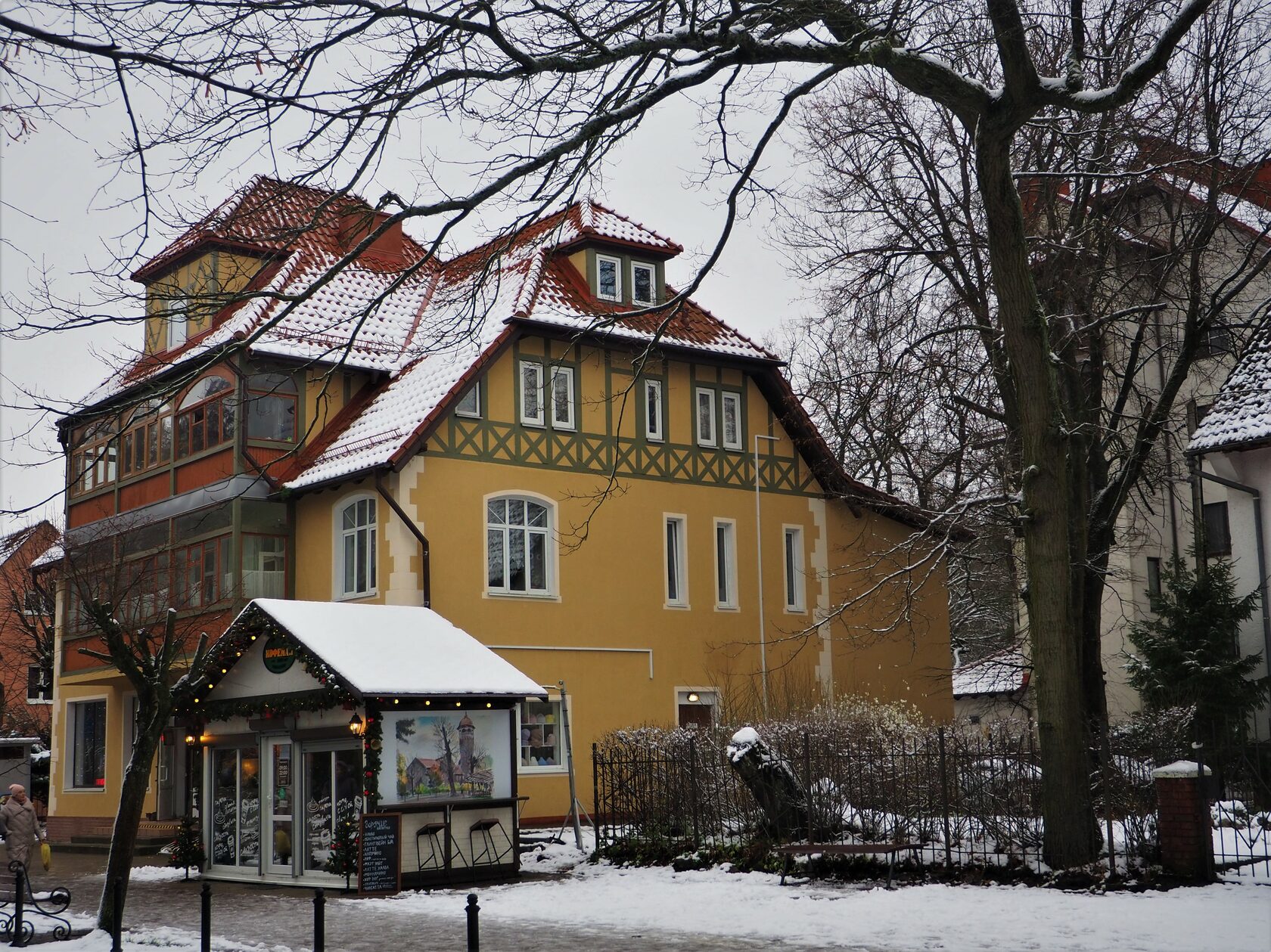 Пляж. С утра я отправилась на променад к Балтийскому морю. Туда можно спуститься пешком, проехать на фуникулере или на скоростном лифте. Сначала я попробовала фуникулер. Маленькие желтые кабинки неспешно плыли по направлению к морю, а я любовалась зимними пейзажами. Спустившись вниз, я прогулялась по пустынному пляжу под крики чаек.