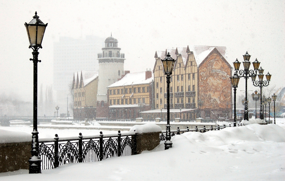 Зимы в Калининграде довольно мягкие: средняя температура –1,5 градуса. Во время моей поездки было +1 и все время шел снег. Такая погода создавала новогоднее настроение и почти не мешала прогулкам.