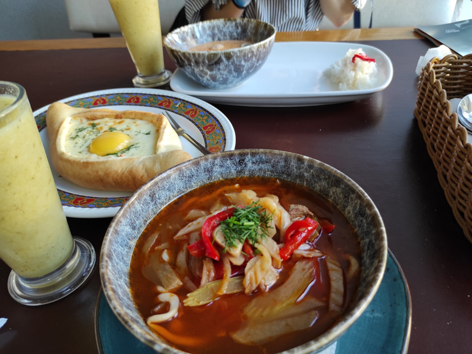 Обед в кафе / ресторанах города с элементами национальной кухни.