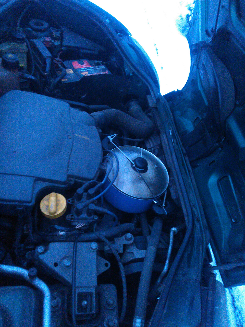 короче приладили мы кастрюлю под капот, чтобы в пути было чем подкрепиться. Всю дорогу наша машина ловила на себе недоверчивые собачьи взгляды, а через посёлки нам было сложно проезжать из-за бегущих за нами псов).