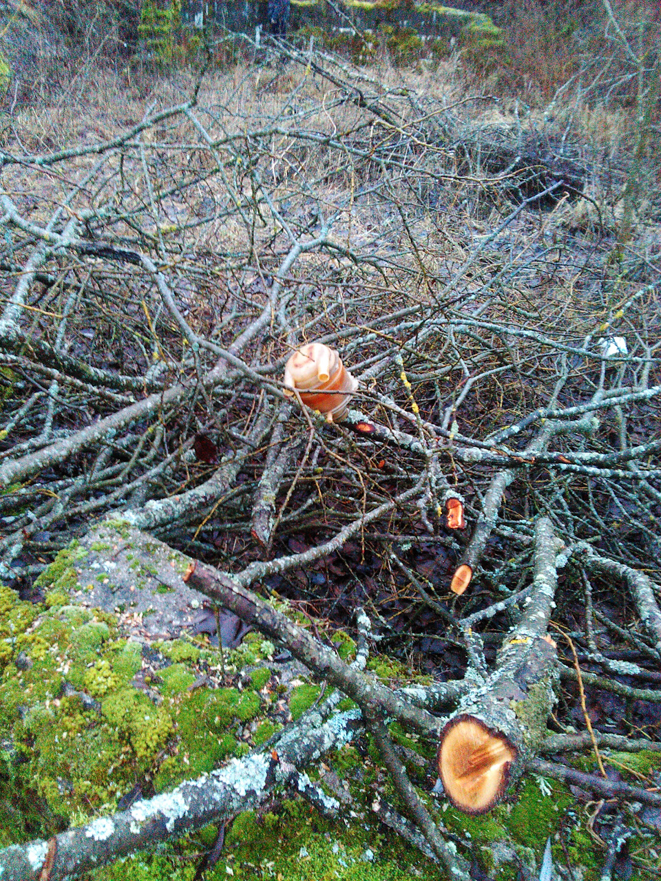 ну и оглядевшись по сторонам, было принято решение идти до ближайшей фермы и сдать потеряшку туда. Дойдя до фермы, грязь на поле показалась нам только что построенным автобаном, с трудом доорались до персонала и отдали животинку, авось выживет. Жёны ни в какую не согласились повторить маршрут по полю и остались в машине, а нам уже было всё равно-ноги и так промокли, да вдобавок я и так уже неделю болею, вообще эта поездка была под угрозой срыва, пошли искать злополучный дот. И прошерстив окресные заросли, в километре от дорог и вообще в жопе мира, как вы думаете что я там нашёл?))))