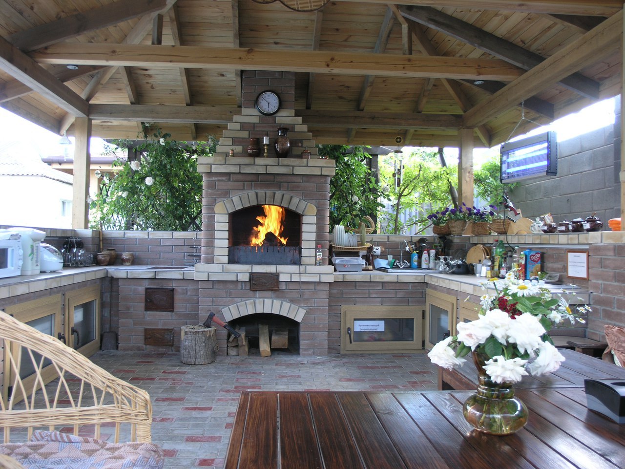 У нас есть все, для комфортного отдыха, в том числе стиральная и посудомоечные машины, камин с вставкой под шампуры и печь для казана, финская сауна и бассейн с подогревом.
